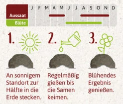 Februar – April in Anzuchtschalen. Saatgut nur ganz leicht bedecken. Saat- tiefe ca. 0,2 cm. Für ausreichend Licht sorgen.