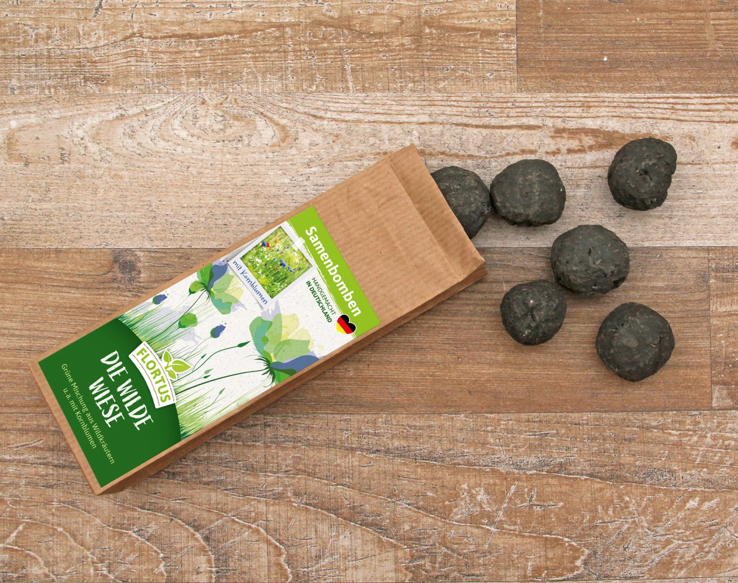 Wir möchten, dass die Pflanzenwelt in den Städten bunter wird. Das Einheitsgrün vielerorts bedeutet für Bienen, Hummeln und Schmetterlinge ökologisches Ödland. Dabei ist es leicht, eine reiche Artenvielfalt zu schaffen. Die FLORTUS Samenbomben können dazu beitragen! Für Garten oder Balkon, als Gastgeschenk oder Giveaway.